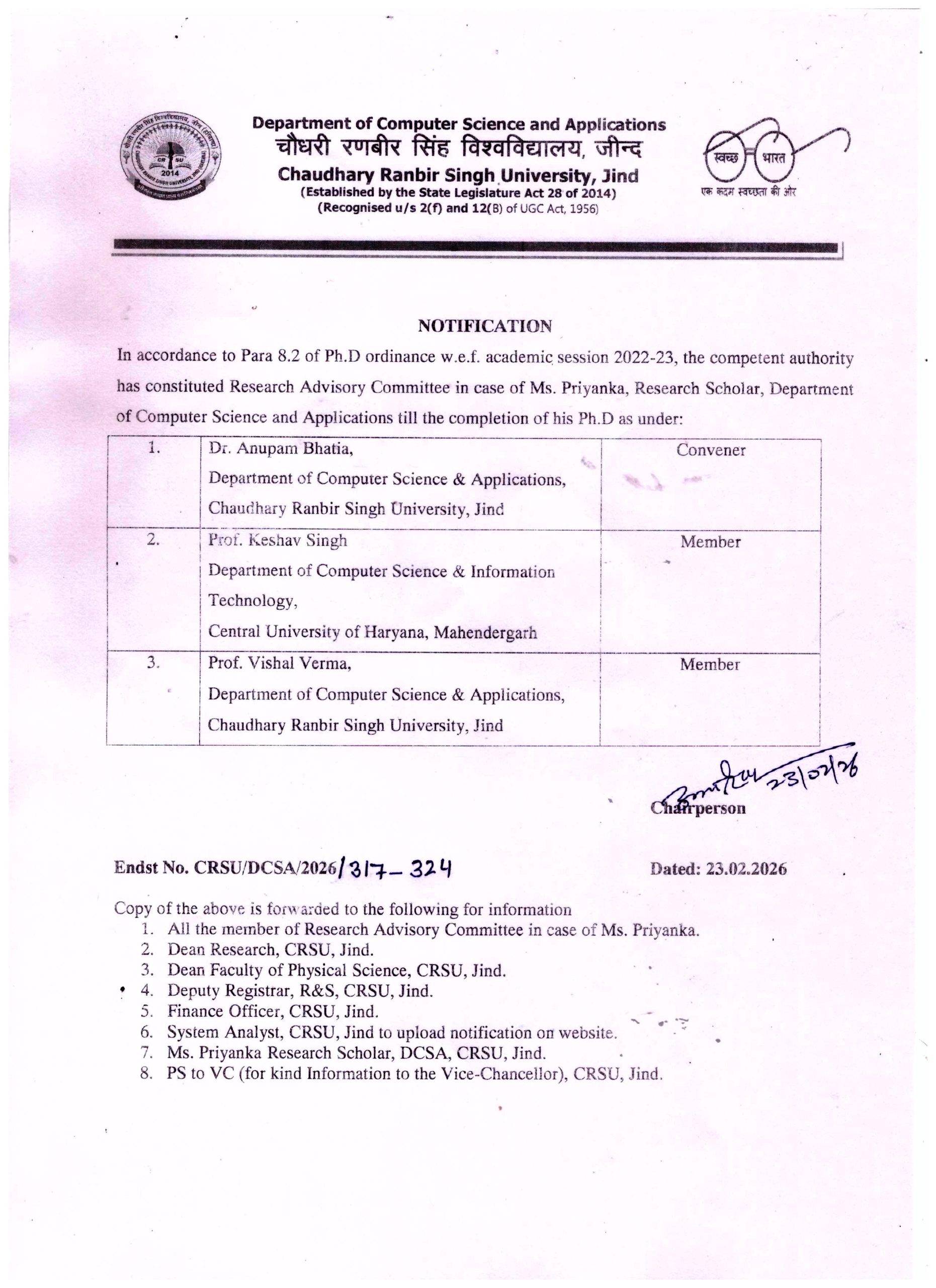 - Email: chcomputerscience@crsu.ac.in